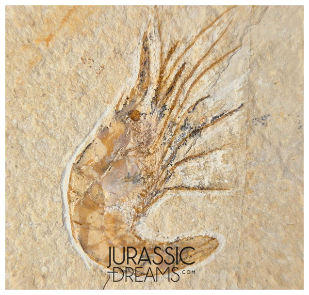 Impressive natural and nicely preserved fossil Shrimp (Carpopenaeus sp). Coming from the famous Cretaceous outcrops of Lebanon. These fossil deposits were first mentioned by the Greek historian Herodotus where he said there were "fish in the stones".